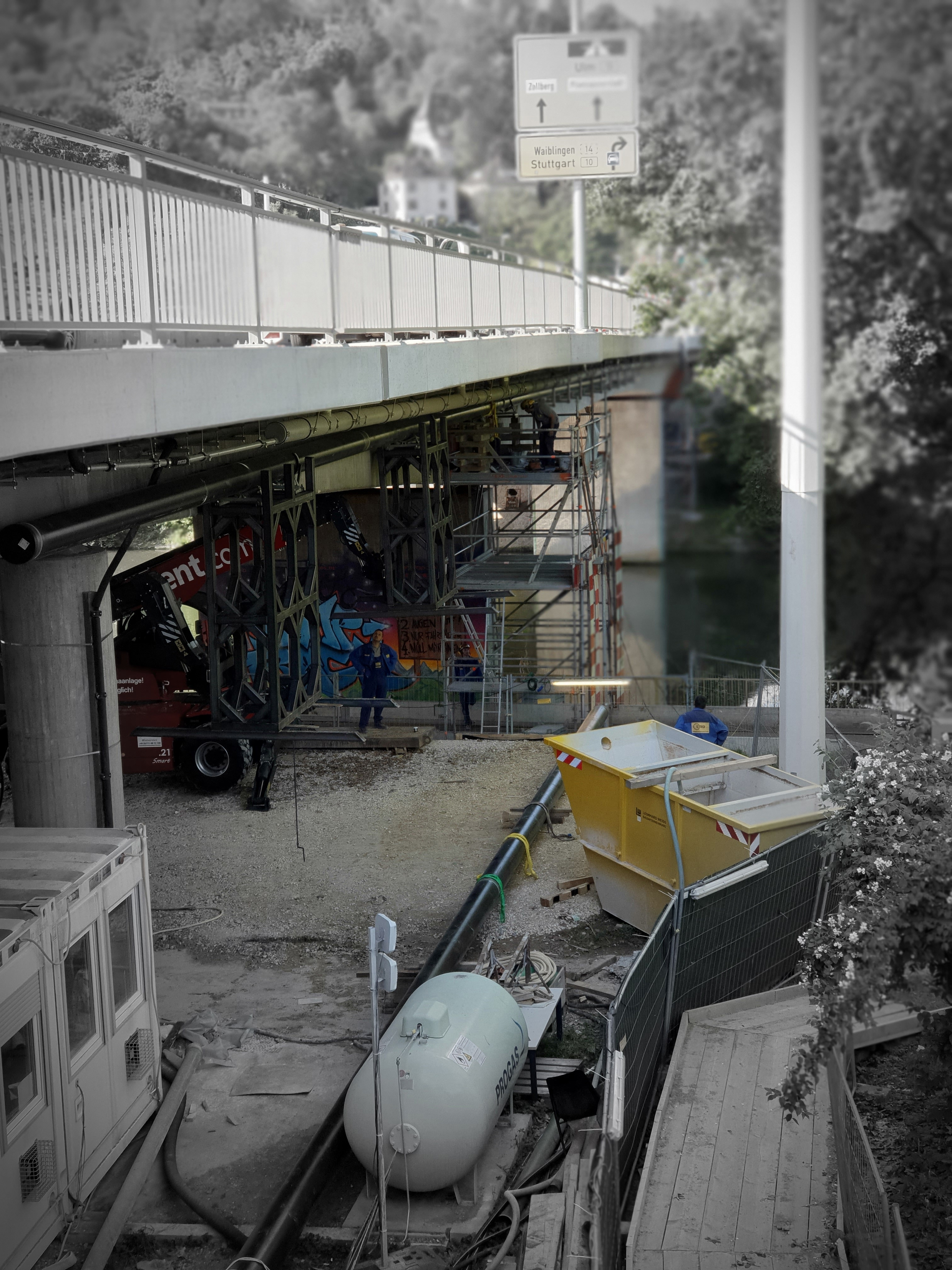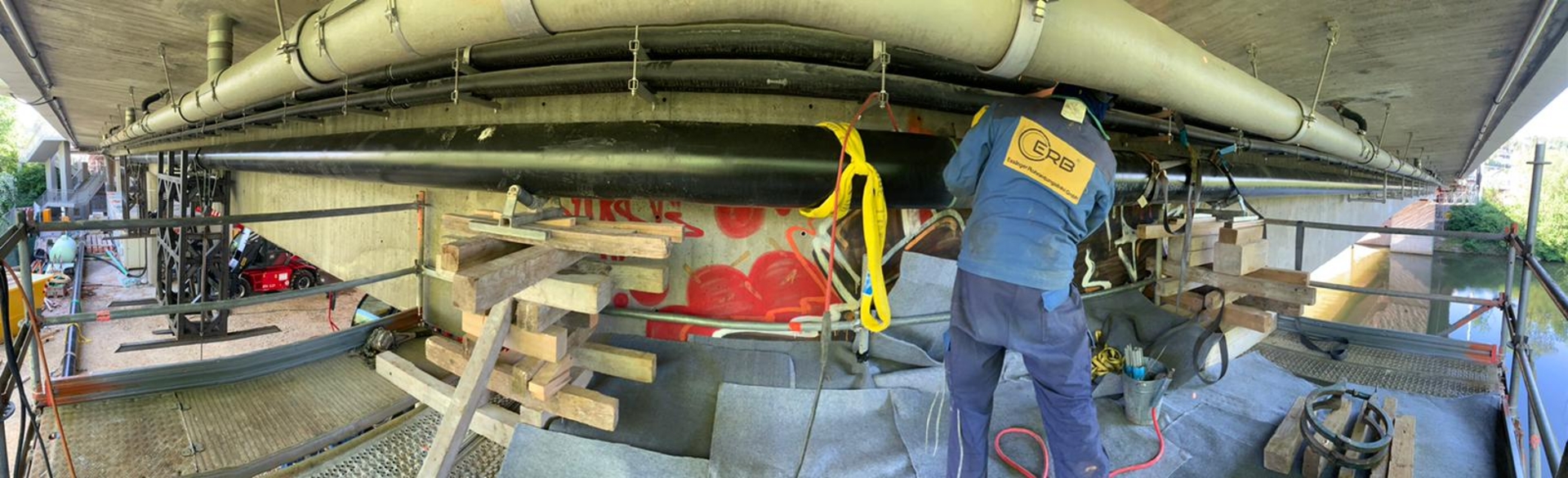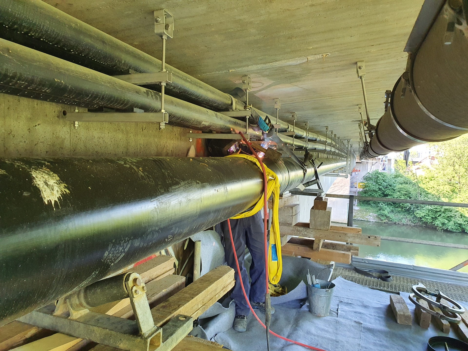 #Unterbrückenrohrverlegung einer #Gasmitteldruckleitung DN 300 über dem Neckar / Impressionen von Tag 2