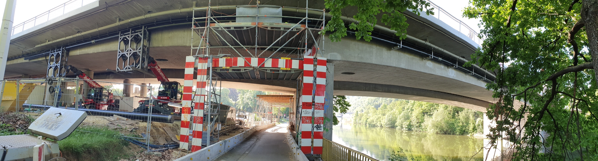 Am Montag, dem 4. Mai 2020, begann der dritte und letzte Bauabschnitt auf der Vogelsangbrücke. Das Baufeld wandert aus der Brückenmitte auf die östliche, flußaufwärts gelegene Seite. Der #EsslingerRohrleitungsbau verlegt für die #StadtwerkeEsslingen eine #Gasmitteldruckleitung DN 300 unter der Brücke und über dem Neckar.
